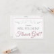 Use this "Flower Girl proposal card" to ask your special friend, sister, or other family member to be a Flower Girl at your wedding. It features dusty rose or mauve pink and grey text on a white background with a silver faux foil flourish. There is a space to enter a special note, as well as the wedding couple's names and wedding date. All fields are fully customisable.
