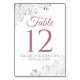 Make your wedding reception beautiful with these table number cards. These table number cards feature a simple yet elegant design with dusty rose or mauve pink & Grey text on a white background with lacy silver faux foil curls and swirls in the corners.