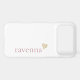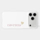 This personalised phone case features a clean white background with a custom name written in a soft dusty rose font. A small gold leopard print heart at the end of the name adds a trendy animal print accent that gives the design a fashionable and feminine look. The combination of dusty rose and leopard pattern reflects current style trends while keeping the design simple and elegant. The gold effect is printed colour only and does not contain real metallic shine. Add any name to create a unique phone accessory that also makes a stylish gift for friends, teens or anyone who loves personalised designs.