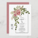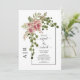 Dusty rose pink watercolor flowers, arch and monogram spring wedding invitation. This lovely wedding design features an arch frame with dusty rose pink cactus flowers and leaves on the left corner and your monogram. The names are in script typography.