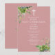 This elegant eucalyptus greenery botanical dusty rose pink first holy communion save the date invitation can be personalised with your information in chic typography with monogram initials on the reverse. Designed by Thisisnotme©