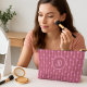 Dusty Rose Pink Large Text With Flowers Accessory Pouch