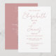 This dusty rose pink minimalist elegant script wedding invitation can be personalised with your information in chic typography with your wedding website details and your QR code on the reverse. Designed by Thisisnotme©