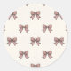 Elevate your gift-giving and stationery with these elegant coquette-style round stickers. Featuring a dainty repeating pattern of dusty rose pink bows on a soft cream background, these labels are the perfect finishing touch for anyone who loves a vintage, feminine aesthetic.