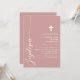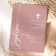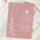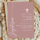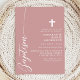 Celebrate the sacred occasion of a baptism with this elegant dusty rose pink invitation. Featuring a minimalist design with modern script and a delicate cross, this invitation is perfect for inviting friends and family to join in this special event. The soft colour and simple, clean lines add a touch of sophistication and grace, making it ideal for such a meaningful celebration. Customise the details to create a unique and memorable invitation for your child's baptism.