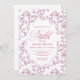 Invite guests to celebrate with this elegant bridal shower invitation featuring classic French toile de Jouy roses. Soft dusty pink, blush, and pink and white floral patterns create a romantic vintage look, beautifully accented with refined rose gold details. Professionally printed by Zazzle, this design delivers crisp text, rich color, and a smooth, premium finish that highlights every rose and floral detail. Perfect for a timeless, floral, or classic bridal shower theme, this invitation is fully customizable and arrives polished, photo-ready, and ready to impress your guests.