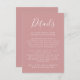Featuring signature style script heading, this elegant dusty rose and white guest information details enclosure card can be personalised with your guest details information in chic white lettering. Designed by Thisisnotme©