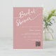 Invite guests to celebrate the bride-to-be with this dusty rose bridal shower invitation, featuring chic calligraphy and a modern scannable QR code for registry or RSVP access. The flowing white script adds a romantic touch, while the soft rose background offers an elegant, feminine feel. Personalise with your event details and make planning simple and stylish.