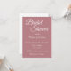 Simple style, bridal shower invitation that features a trendy, dusty rose colour background along with the future bride's name and party event time and location, contact, etc., printed in white, stylised lettering. Personalise your invitation by replacing text with your own bridal shower information. Select your invitation paper style and quantity.