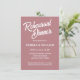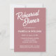 Simple style wedding rehearsal dinner invitations that feature white, stylised lettering on a trendy, dusty rose colour background. Edit your invitations by replacing names, date/time, location, and contact info with your own. Select your invitation size and paper style.