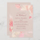 This tropical wedding invitation is for pink lovers. The pink blush and dusty rose colour of dried palm leaves, pampas grass, and white orchids make the card romantic. The boho font pair give an elegant and sophisticated touch to the design. It's ideal for outdoor summer weddings.