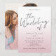 This modern, minimalistic wedding invitation features an elegant script front. It plays with the simplicity of a black and white typography design, adding just a hint of pink dusty rose colour. In the back of the invitation you can add your wedding website information as well as a QR code for your guests to scan. It's the perfect choice for couples who appreciate clean and modern elegance.