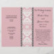 Elegant simple bifold wedding program with white vintage damask pattern on a dusty rose pink background colour. Use the "CUSTOMIZE IT" option to edit text and change spacing etc. Folding required upon receipt.