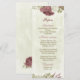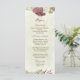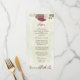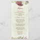 Beautiful romantic wedding menu card featuring dusty rose and white flowers and some pretty leaves .