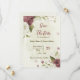 Beautiful romantic wedding save the date invitation featuring dusty rose and ivory white flowers and some gold leaves .