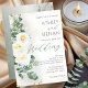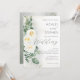 This elegant dusty sage green wedding invitation features soft white roses, eucalyptus greenery, and delicate gold accents for a romantic garden-inspired celebration. Perfect for classic, botanical, and neutral wedding themes.