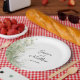 A trendy combination of dusty green, white and sage Wedding paper plate that can be personalised for your very special event!