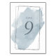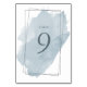 Dusty silver table card with watercolor cloud and double silver rectangle border with elegant sans serif font for number and title