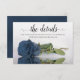 This beautiful wedding details/website card is designed to let your guests know where to go online to get more information on your wedding website. It features an elegant design with lacy script calligraphy and a single dusty steel blue grey coloured rose reflecting in water with waves and ripples.