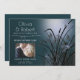 Rustic Nature Photo Engagement  - Your photo with this dusty teal theme, a soft glow behind a pretty display of  cattails and grasses with sparkly dragonflies glistening in the glow -  the back is a coordinating colour  easy to customise template - original artwork by WhimsicalArtwork™ for  theBarefootBride ™. This is part of a complete wedding stationery suite, as well as Baby Shower, Birthday and Christening Invitations. For question or assistance please contact designer indy.designer@yahoo.com.