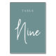 Simple and chic table number cards in dusty teal aqua and white make an elegant statement at your wedding or event. Design features "table [number]" in an eyecatching mix of classic serif and handwritten script lettering. Design repeats on both sides. Individually numbered cards sold separately; order each table number individually from our collection.