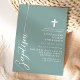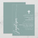 Celebrate the sacred occasion of a baptism with this elegant dusty teal invitation. Featuring a minimalist design with modern script and a delicate cross, this invitation is perfect for inviting friends and family to join in this special event. The soft colour and simple, clean lines add a touch of sophistication and grace, making it ideal for such a meaningful celebration. Customise the details to create a unique and memorable invitation for your child's baptism.