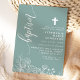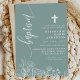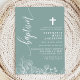 Dusty Teal White Floral Elegant Script Baptism Invitation