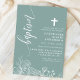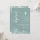 Celebrate the sacred occasion of a baptism with this beautiful dusty teal and white floral elegant script invitation. Featuring intricate white floral designs on a soft teal background, this invitation is perfect for inviting friends and family to join in this special event. The elegant floral elements add a touch of natural beauty and grace, making it ideal for such a meaningful celebration. Customise the details to create a unique and memorable invitation for your child's baptism.
