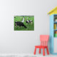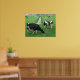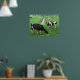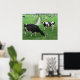 Dutch Dairy Cows Poster with a photo of a curious Cow Looking directly into the Camera at You and a Hungry grazing Cow Eating tasty Grass in a Green Rural Dutch Polder Meadow with a Ditch Photo Poster Print.