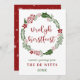 Green and red Christmas holiday wreath holiday card, with the words Merry Christmas in Dutch: Vrolijk Kerstfeest.