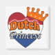 Leuke magneet met een hart afgebeeld met de Nederlandse vlag erop. Op de tekst staat: Nederlandse prinses De achtergrond is in de kleur wit. Leuk om te geven als cadeau of voor jezelf om te laten zien dat je trots bent om een nederlander te zijn.. Leuk om te dragen bij bijvoorbeeld koningsdag . Afbeelding van een hart en een oranje kroon.
