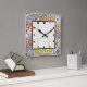 10.75” x 10.75” acrylic wall clock with a vintage image of ceramic, tin-glazed Dutch tiles. Easy-to-read clock face on white transparent square with navy border. See the entire This & That Clock collection in the HOME section.