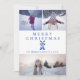 Dutch Delft Blue windmill "Merry Christmas", 3-photo holiday card, with matching floral and windmill pattern backing.