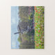 A beautiful view of a windmill in Holland from the tulip fields printed on a puzzle.