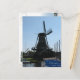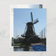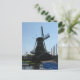 A Dutch windmill silhouette against a blue sky with a row of small sailing boats and masts lined up in the canal with reflections of the sunlight in the water during summer time in the Frisian town of Woudsend photo postcard. The windmill is a saw mill and is named "De Jager" ("The Hunter") and was built in 1719. This saw mill is one of three left in Friesland, Fryslan, the province in the North of The Netherlands. This Holland Frisian photo card is fully customisable! add your text or images!