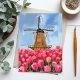 Dutch Windmill Tulip Flower Field Watercolor Postcard