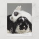 Dwarf-eared rabbit leaning over lop-eared postcard