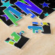 This fun, exciting, birthday-themed jigsaw puzzle design features the message "HAPPY BIRTHDAY, DYLAN" with the characters having a colourful rainbow spectrum inspired gradient pattern, in addition to a vibrant field of stars background pattern. An exciting puzzle like this might be used to send birthday greetings to somebody named Dylan. [~Z0000468]