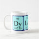 Dylano spelled out as Dy La N O (Dysprosium Lanthanum Nitrogen Oxygen) on a mug for the scientist in you.