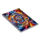 This mesmerising image features a vibrant and intricate abstract spiral pattern that blends a multitude of colours seamlessly into one another. Deep blues and purples mix with bright reds, oranges, yellows, and greens, creating a swirling effect that draws the viewer's eye towards the centre. The dynamic and visually captivating design evokes a sense of movement and depth, making it a compelling piece of art that captures attention through its complexity and vibrant colour palette.
