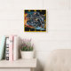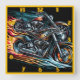 Dynamic fiery motorcycle racing through the night square wall clock