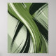 The design showcases a bold abstract composition dominated by flowing, wave-like curves in various shades of green, ranging from light pastel green to deep dark green. The sweeping strokes create a sense of energy and motion, resembling brushstrokes or stylised waves. Black outlines and accents enhance the contrast and definition of the curves, giving the piece a striking graphic quality. Additionally, halftone dot patterns are integrated into the background, adding depth, texture, and a retro-inspired pop art feel. The overall effect is both modern and dynamic, blending organic movement with contemporary abstract design.