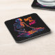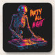 Dynamic Neon-Coloured Skeleton DJ Spinning Records Coaster