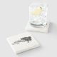The coasters are gorgeous, a quality feel and heavy weight. They look like a precious archeological find. A rustic stone juxtaposed with a modern floral black and white print. I like the way the print goes slightly imperfect on the cut stone edges giving them a kind-of natural beauty.