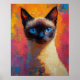 This piece captures a serene Siamese cat surrounded by a burst of wildflowers, set against a glowing orange-yellow sky. The expressive brushstrokes and vivid palette evoke a dreamlike world where nature and elegance meet. Inspired by the beauty of contrast and emotion, this artwork celebrates the harmony between calm and color.