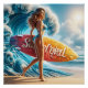 Dynamic Surfer Girl Walking Beach Waves Art Poster