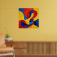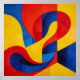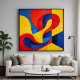 An abstract artwork that is a striking exploration of colour and form, featuring sweeping, fluid curves that playfully intersect with sharp, geometric boundaries. Rendered in vivid primary hues. This piece creates a continuous sense of motion and vibrant, kinetic energy, rendered in colours of deep crimson, brilliant sunshine yellow, and cobalt blue. Perfect for modern, minimalist, or mid-century interiors, this artwork acts as a brilliant focal point that instantly brings a room to life. The interlocking ribbons of colour create a mesmerising optical depth, inviting the viewer to trace the endless, rhythmic loops of the composition. It’s an ideal choice for a living room, a creative office, or any room that needs a pop of colour.