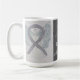 Dyslexia uses a silver awareness ribbon to show support for its awareness. This custom mug features silver awareness ribbon guardian angel art paintings with the message "I Hope and Support Dyslexia Awareness!" The custom silver awareness guardian angel ribbon art picture coffee cups or mugs can be customised with personalised messages to make great cause mugs for awareness fundraisers, awareness cup gifts, or other special events or cause support occasions. Make your own customised words for a personal message of hope and support to share!