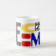 Famous equation E=MC2, all in primary colouring and misshapen to form a square with all components of the equation.