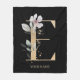 Letter E monogram floral. Letter E in golden brown texture accented with green watercolor compound leaves, flower blossoms and gold dust. Personalised with name in matching font.